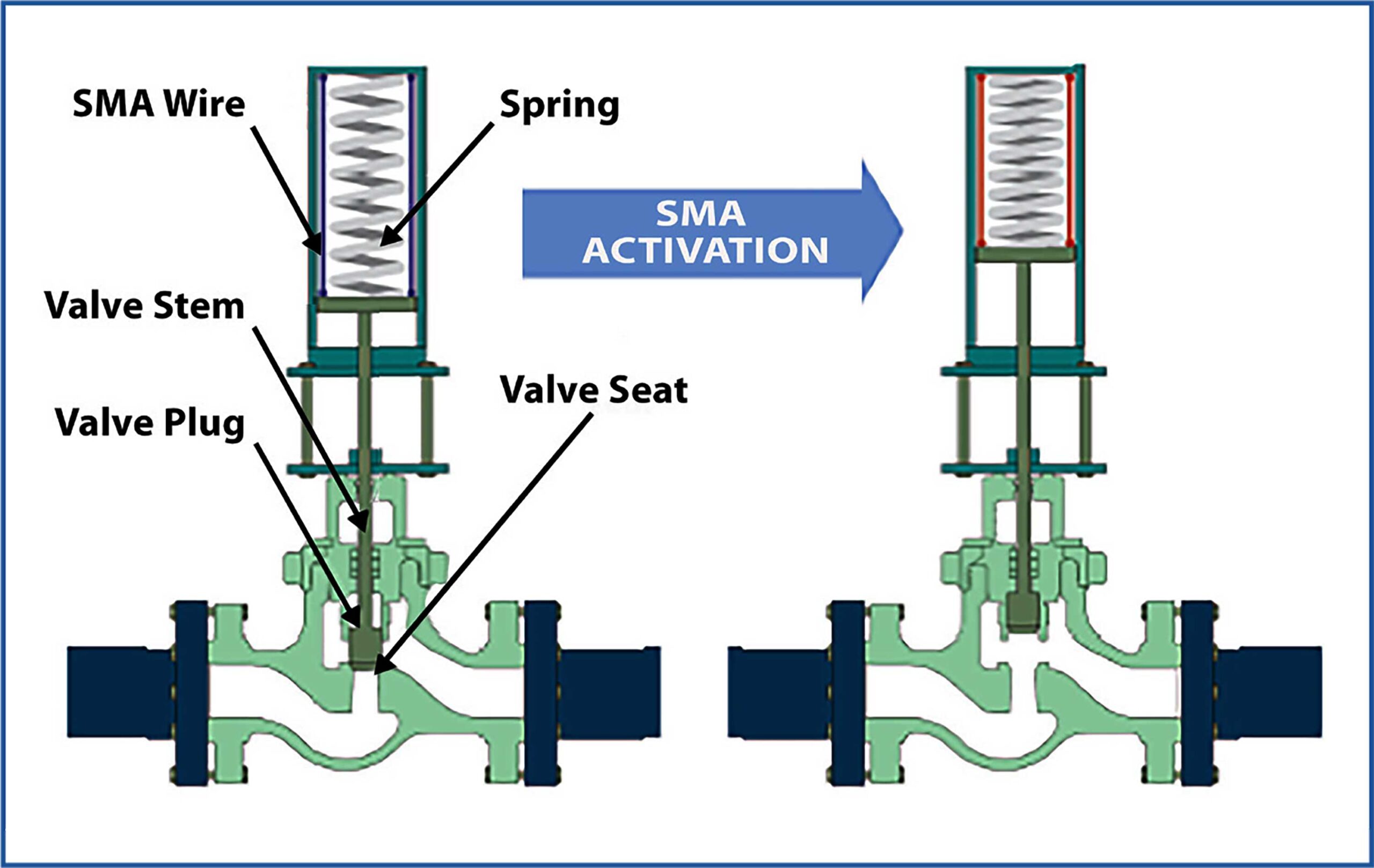 Figure 2: This shows how the shape memory alloy works in a valve actuator application.