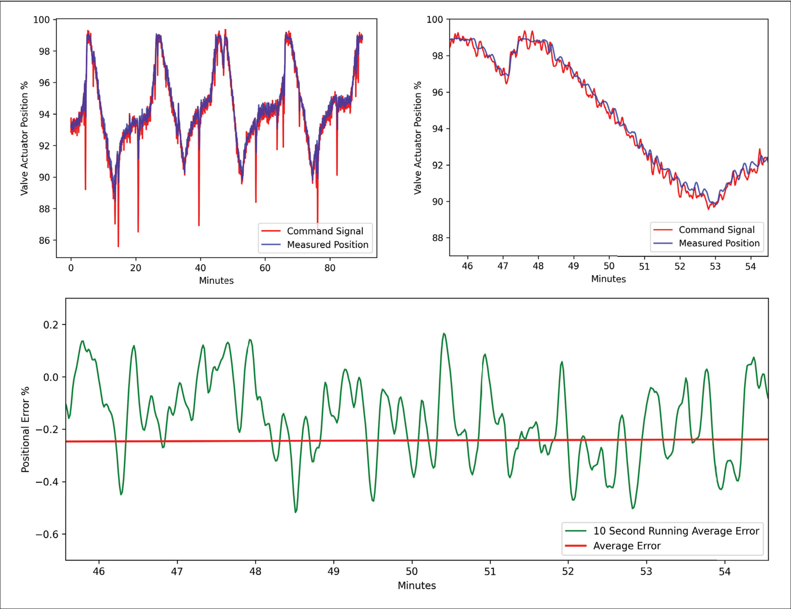 Figure 3: At a natural gas production facility, the installation of a wire actuator bundled with shape memory alloy (SMA) showed excellent performance. It maintained an average error of less than 50 μm (0.002 inches) while controlling a back pressure valve that modulates continuously.